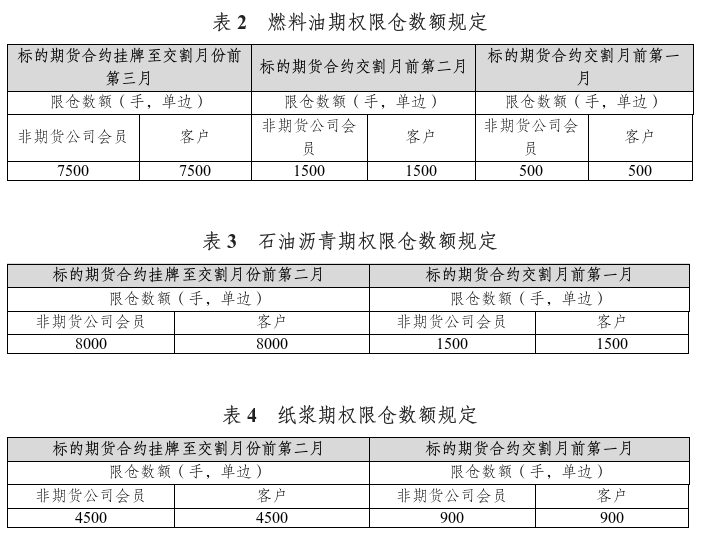 燃料油期權(quán)合約月份涉及的標的期貨持倉量閾值為30000手(單邊);石油瀝青期權(quán)合約月份涉及的標的期貨持倉量閾值為50000手(單邊);紙漿期權(quán)合約月份涉及的標的期貨持倉量閾值為20000手(單邊)。