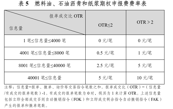 燃料油、石油瀝青和紙漿期權(quán)對客戶信息量收取申報費,各品種收取標準一致,如下表所示。